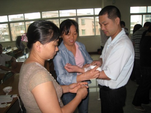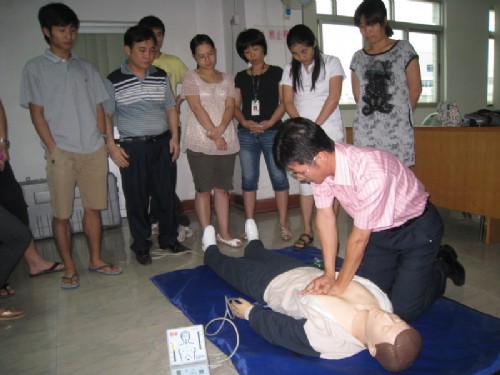 2010年8月26、27日,这是开平市红十字会今年内开办的第三期红十字初级卫生救护培训班,前来参加培训的学员来自兴时年服装有限公司、恒华塑料制品有限公司、立权制衣厂和红十字志愿者,通过两天的培训,使受训者掌握现场急救知识和基本操作技能,在意外事故现场能立即进行自救和互救,以达到保障生命、减少伤害的目的。