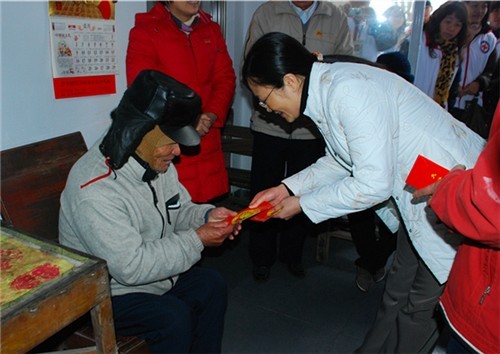 开平市副市长、红十字会会长黄婉慈同志向老人送上慰问金