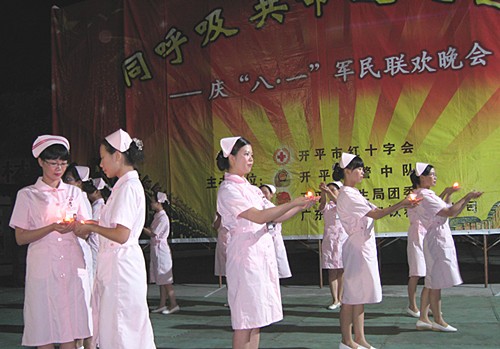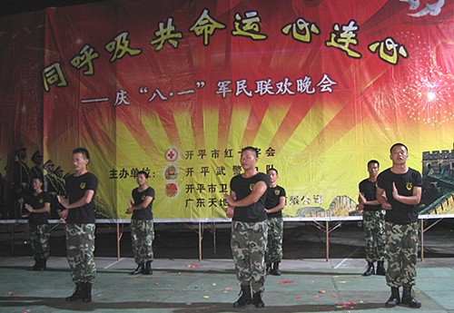 晚会期间,由主持人代表我市红十字会、市卫生局团委向广大军民表示节日问候与祝福。联欢晚会上,我市红十字志愿者、武警中队官兵、市中医院、市妇幼保健院、第二人民医院、第三人民医院、市疾控中心的医务人员参与军民同心的游戏并表演了舞蹈、歌唱、武术等丰富多彩的文艺节目,整个晚会充满了欢声笑语,真正体现了军民同心的祥和局面。