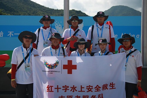 为了保障大运会期间水上比赛项目中运动员的安全,参照国际比赛的惯例,深圳市红十字会联合广东省红十字会、台湾红十字会组织成立了15人的“水上安全救生志愿者服务队”。15名队员来自各行各业,其中4人是台湾红十字志愿者,4人是深圳市红十字志愿者,另外7人是广东省红十字会推荐的志愿者,开平市红十字会志愿服务队张培绚副队长是其中一员。