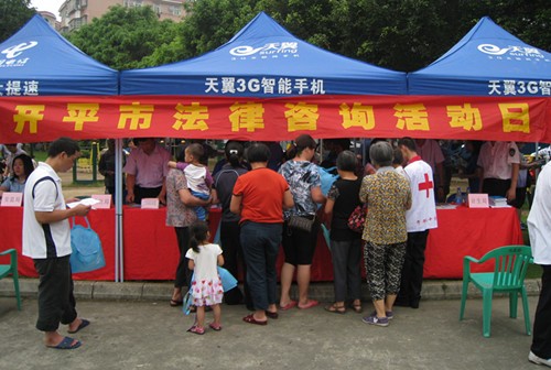 4月27日上午,开平市法律咨询活动日在市总工会篮球场举行。我市红十字会组织工作人员现场接受群众咨询、发放宣传资料、赠送宣传礼品。