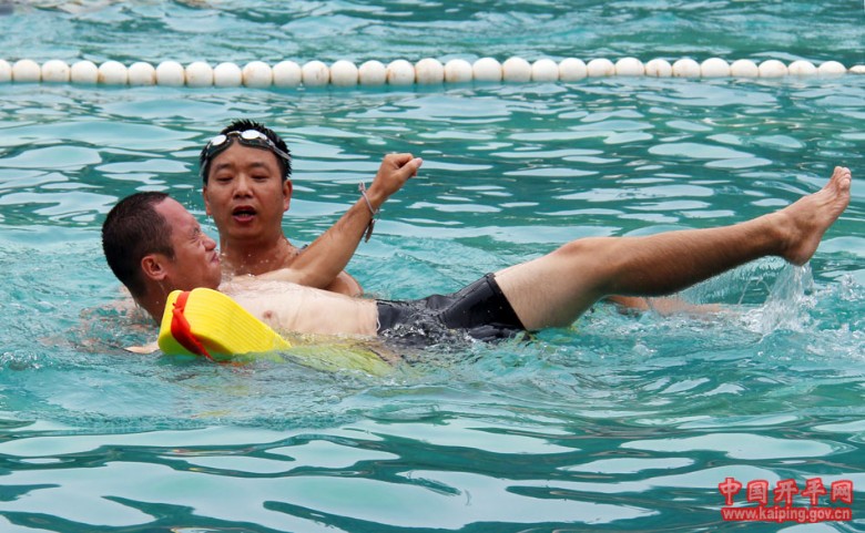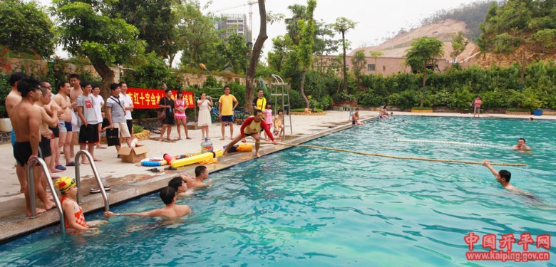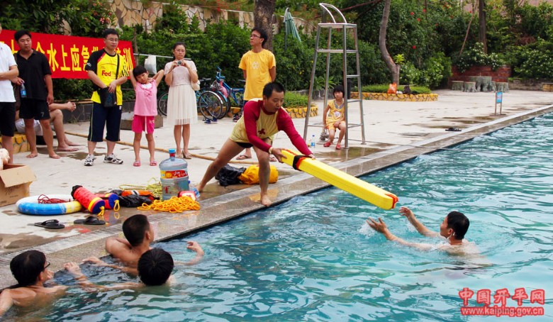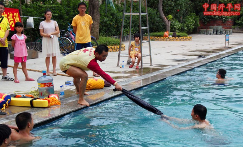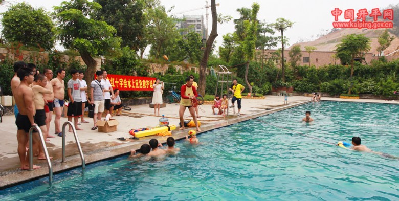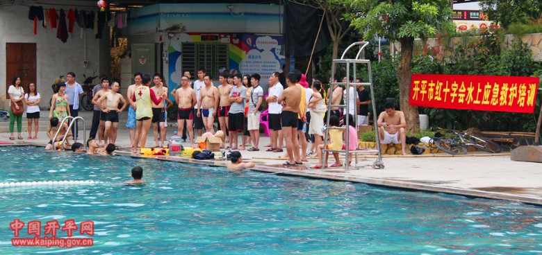 8月5日早上,开平市红十字会在某游泳场举办水上应急救护培训班,来自市机关单位的工作人员、志愿者等近50人参加了培训。