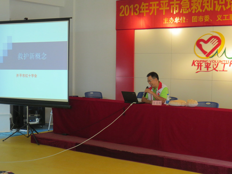 为更广泛开展和普及应急救护知识与技能培训工作,进一步提高广大义工防灾避险、自救互救能力,弘扬“人道、奉献、博爱”的红十字精神,8月19日和20日,由市红十字会、共青团市委员会、市义工联合会联合举办的“2013年开平市急救知识培训班—义工专场”在市义工联合会培训课室拉开了帷幕。