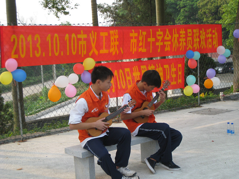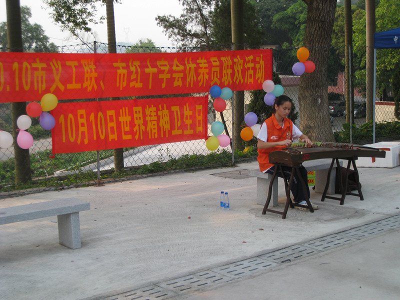 宣传慰问活动中,志愿者向休养员们派发了食品,并现场表演了古筝、吉他演奏,场面温馨、和谐。红十字会志愿者还与休养员一起合唱“爱的奉献”、“朋友”等歌曲,休养员们给予了良好的反应。为了使活动更加丰富多彩,志愿者与休养员进行吹气球、投蓝球比赛等互动游戏,让休养员在轻松、充满欢笑的气氛中渡过了有意义的一天。