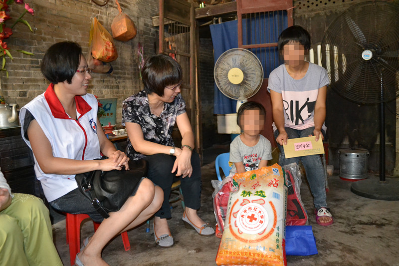 给患儿送慰问金和慰问品