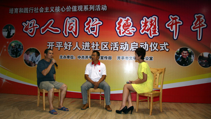 据悉,开平市好人进社区活动是我市培育和践行社会主义核心价值观的重要载体,为进一步弘扬楷模精神,将在7月到10月期间将举办15场好人进社区活动。