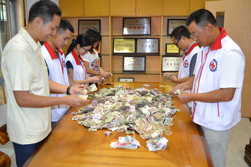 一张张一角、五角、一元的钱币都承载着捐献者满满的爱心。经过3个多小时的整理,共清点捐款3570元。我市的红十字救助基金也增加到25499元,捐款的收入和支出将在相关网站上定时公示。