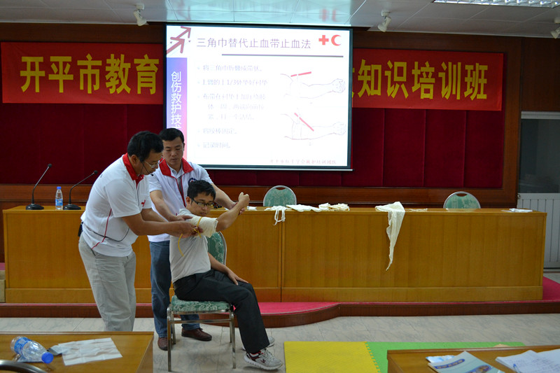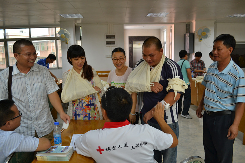 培训内容包括应急救护理论知识讲座和操作演练,在市红十字会专业教师的指导下,学员们认真学习了心肺复苏操作、创伤救护技能操作等理论知识,并分组进行了心肺复苏、止血、包扎等专业化操作演练,次日进行理论和实践操作考核也进一步加深了学员们对急救知识的理解和掌握。