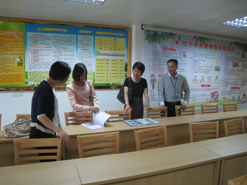 冯冰会长一行在听取了我会关于社区应急救护培训工作的汇报后,深入长沙街道办事处东兴社区终身教育培训基地的现场进行了调研。在谭珍金同志等人的陪同下,参观了集理论、演练、观摩为一体化的培训基地。室内培训室可容纳60人就座,室外培训室设在社区内的文化健身小公园。接着,冯会长等人还参观了社区应急救灾物仓库。