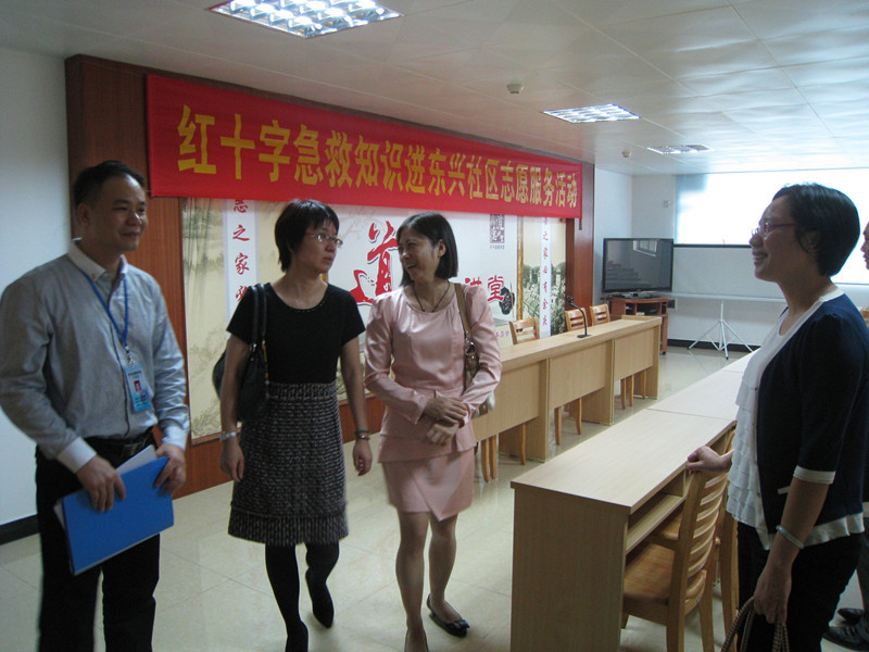 冯冰副会长、梁艳红主任等一行人现场指导东兴社区应急救护培训工作