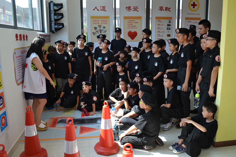 8月4日下午,开平市红十字生命安全体验馆迎来了一批小小参观者,他们是正在市青少宫参加军训的小学生们,30余名学生在体验馆讲解员的带领下对体验馆内的“九区二堂”进行了参观。