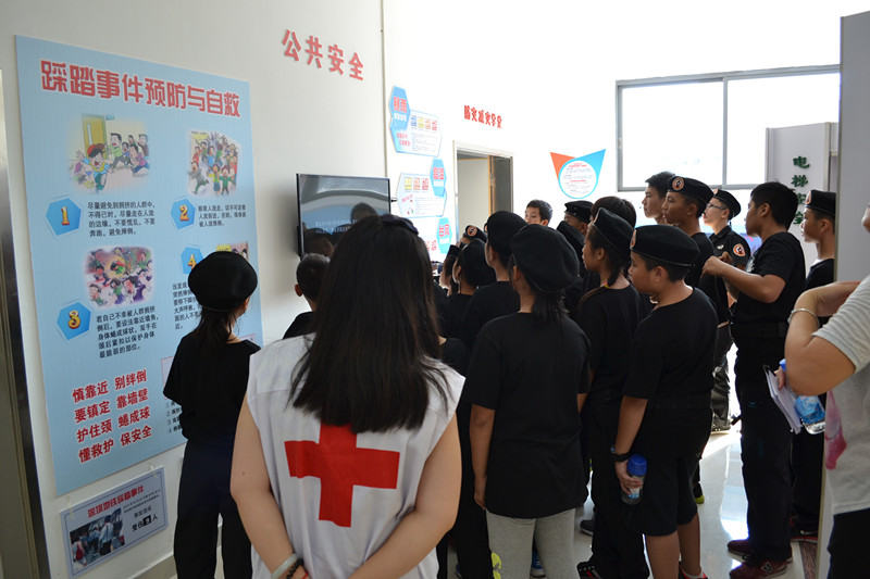 参加军训青少年参观生命安全体验馆
