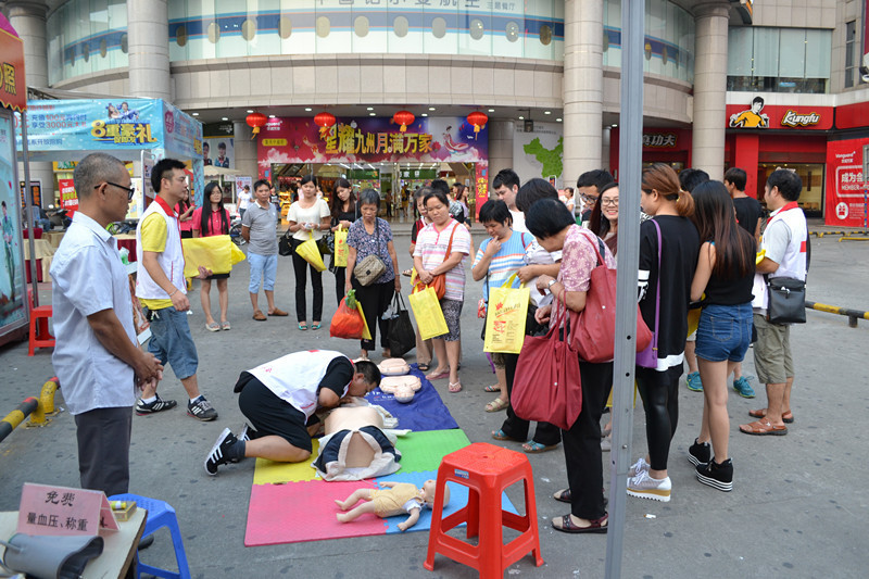 9月15日下午,为使“世界急救日”走进广大群众的生活,我会围绕“急救与老龄化人群”的主题,在市益华广场开展了主题宣传活动,为活动达到预期效果,我会制定了活动方案,明确了工作人员的分工和职责。