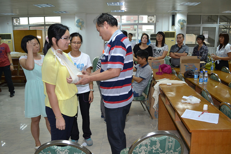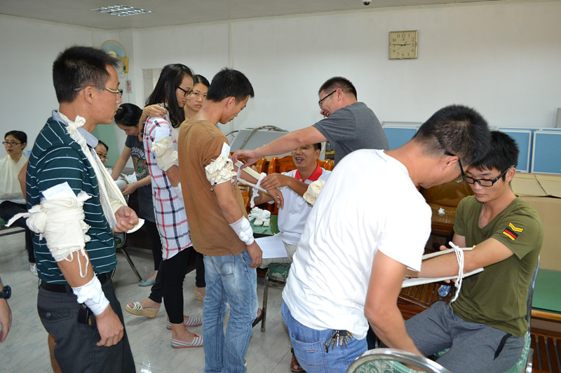 培训重点讲解了心肺复苏术、创伤救护急救处理、溺水救援等内容,并现场进行了演示。学员们模拟了在应急环境下,操作徒手心肺复苏术、止血包扎等应急救护方法,达到了理论与实践的有机结合。