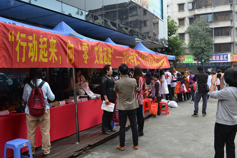 2015年12月1日,是第28个“世界艾滋病宣传日”, 开平市红十字会组织多名志愿者开展“行动起来!‘零’艾滋迈进”为主题的大型宣传活动。
