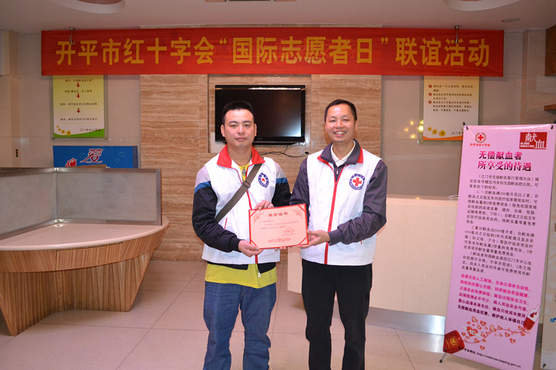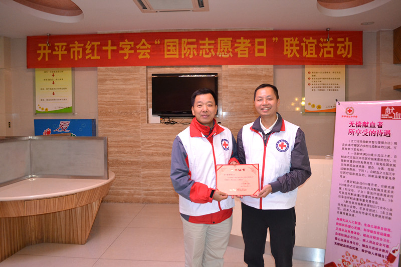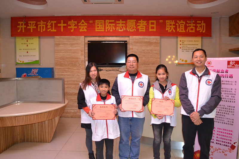 2015年12月5日,我会在开平献血屋举办了红十字优秀志愿者表彰暨“国际志愿者日”座谈交流会。红十字会工作人员及志愿者代表共计40余人参加了本次活动。