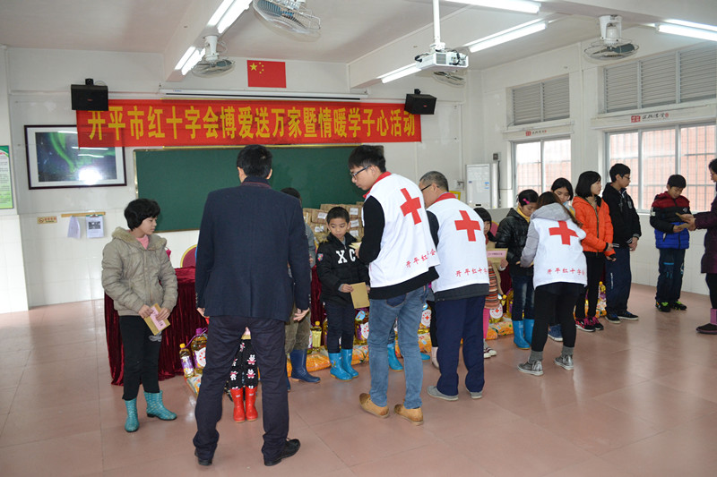 在2016年新春佳节来临之际,为弘扬“人道、博爱、奉献”的红十字精神,开平市红十字会在上级部门的大力支持下,相关部门的积极配合下,顺利开展了“2016年开平市红十字博爱送万家”活动,将温暖送到困难家庭、孤寡老人、贫困学子手中,把党和政府的关怀、红十字会的温情送入了人们的心中。