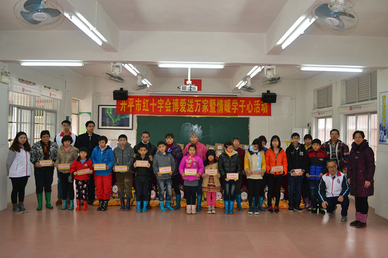 开平市红十字博爱送万家(幕村小学)活动现场合照