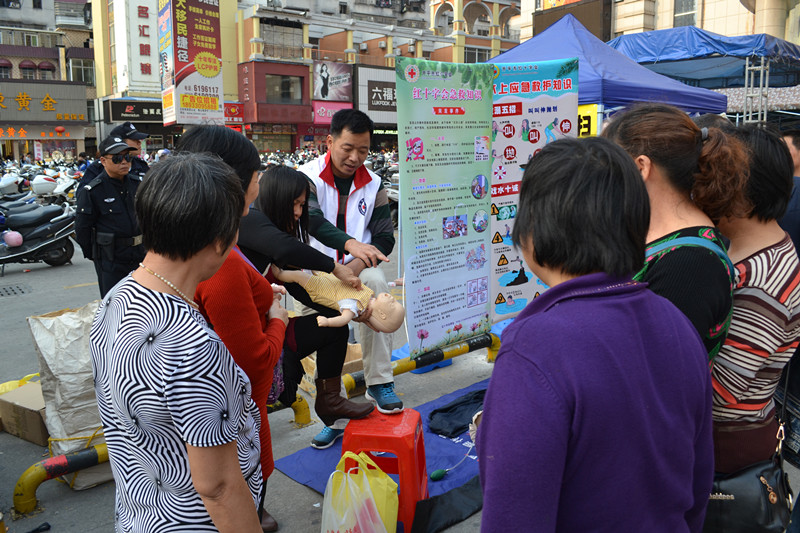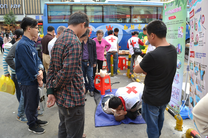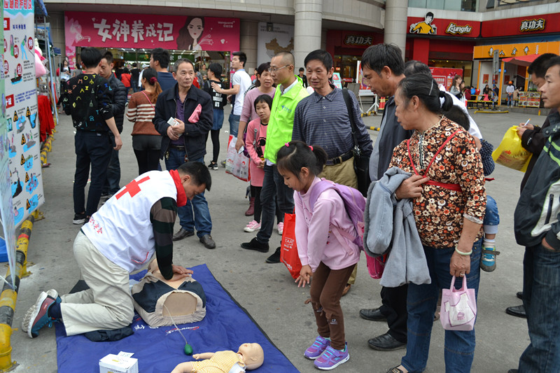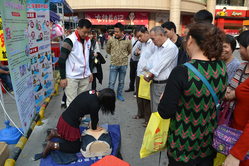 活动当天正值3.8国际妇女节,益华广场人流量剧增,我市志愿者在献血车旁支起宣传支架、摆放起心肺复苏模拟器具,扎实开展宣传服务活动。活动主要分为两大块:无偿献血宣传和应急救护知识宣传。在服务过程中,有的志愿者现场演示应急救护技能,示范心肺复苏术操作规范;有的向过往行人派发宣传资料;有的志愿者和群众讲解无偿献血的知识,引起了不少群众的关注和咨询。一位来自三埠区的年轻妈妈始终关注着应急救护操作演示,看了几次演示后自告奋勇地在模拟人上进行了操作,志愿者们也耐心地为她纠正在操作中存在的问题。她表示,这些知识很实用,希望以后能多多举办这样的活动。