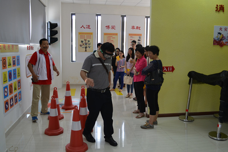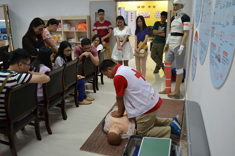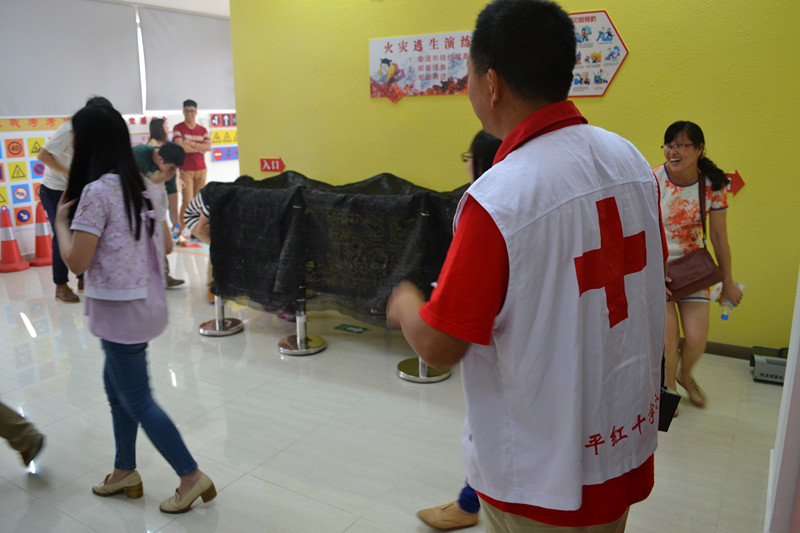 讲解员首先简单介绍了红十字会的起源和历程,让大家对红十字会有初步的了解。随后,带领发改局的各位同志参观了体验馆的“九区二堂”,逐一讲解了交通、火灾、地震等方面的安全知识,及心肺复苏的按压手法,参观者还现场体验了醉驾、火场逃生等“场景”。由于夏日将至,讲解员着重强调了溺水事件自救互救的要点和注意事项,并呼吁将这些知识传授给身边的人。待体验接近尾声,所有人一起观看灾难记录影片,进一步深刻了大家对灾难的认识。体验结束后,大家对本次参观赞口不绝,不少同志还围着讲解员询问家庭应急包、防毒面罩等家庭应急的相关知识。
