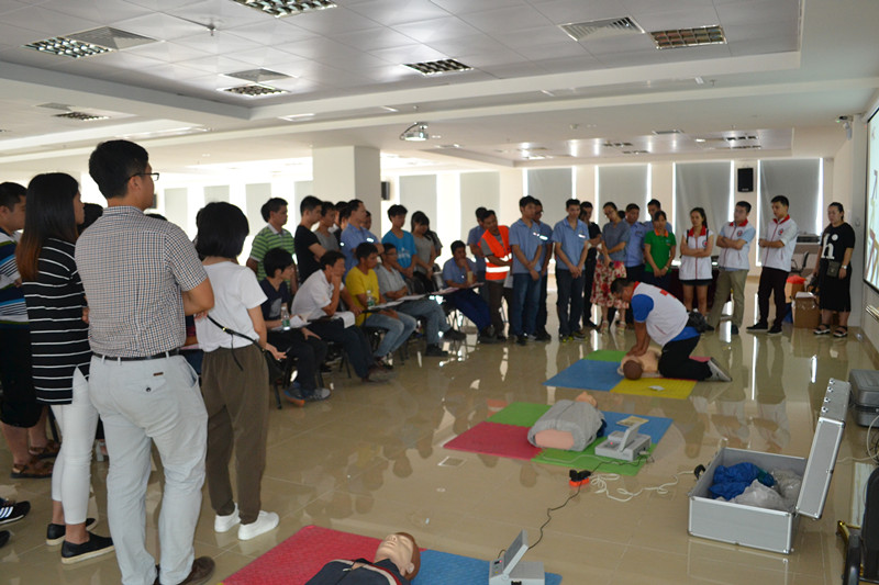 为保障企业人员在遭遇意外事故时有足够的能力自救互救,我市红十字应急救护志愿队走进了位于翠山湖管委会的高美空调有限公司,为高美空调等多家企业约50名员工送上一堂应急救护课程。