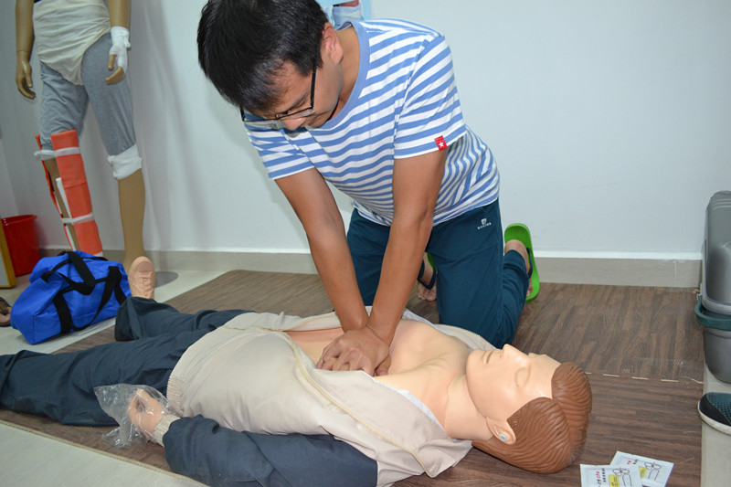 培训开始前,江门市红十字会秘书长林锦云、备灾救灾中心主任梁艳红作了动员讲话,强调在灾难面前,知识就是力量,并要求学员努力学习,提高水上应急能力。上午,在我市生命安全体验馆内,由张培绚老师通过视频、演示等方式为各位学员讲解了戏水十诫、溺水救援等理论知识,并现场教授溺水事件中心肺复苏术的操作技法,以便学员们在实践中有更好的发挥及领悟。下午在泳池进行了不间断游泳200米、救生泳、求生泳、水中自救、基本救生法等项目的实践授课和测试,还现场演示了用救生绳、竹竿、矿泉水瓶、胶桶、胶袋等不同的救生道具在实际救援中的使用方法和技巧,把上午所学的知识运用于实践,以便学员们能够更好的消化、吸收。