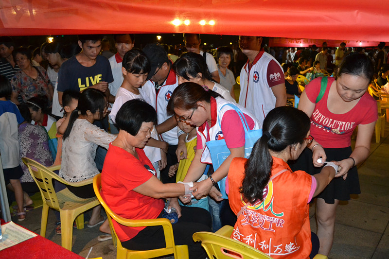 本次活动共分为2个环节:有奖问答和应急技能操作比赛。在有奖问答环节,主持人精心挑选了一些常用应急知识作为提问,如商场中应急通道的位置,加油站中的禁止行为,触电时如何救人等,既贴合实际,又基本覆盖了生活中可能遇到的危险情况。现场的群众纷纷举手抢答,这其中既有银发苍苍的老人家,也有满脸童稚的小朋友,他们对这些应急知识都了然于胸,答题的准确率非常高。第二个环节--应急技能比赛,掀起了本次活动的小高潮,大家积极到两侧红十字会和消防大队的帐篷处进行学习。在志愿者的指导下练习包扎和心肺复苏技术,期间还带动了周围的人一同参与,现场场面十分热烈。