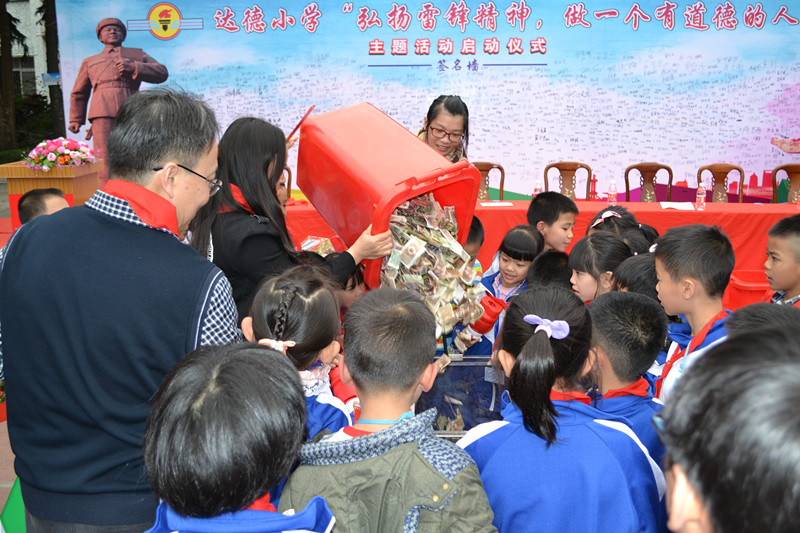 “我宣誓,我志愿向雷锋同志学习,爱党、爱祖国、爱人民……沿着雷锋同志的足迹,永远将雷锋精神传承下去!”2月27日下午,开平市达德小学的校园里回荡着响亮激昂的宣誓声。在学雷锋月到来之际,达德小学举行了以“弘扬雷锋精神,做一个有道德的人”为主题的少先队活动启动仪式暨红十字会爱心储蓄罐回收活动。