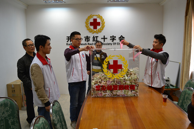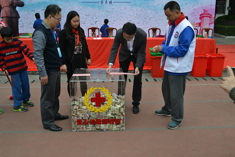 寒假期间,同学们都积攒了不少零用钱,这些零用钱该怎么花呢?达德小学鼓励同学们将零用钱存起来放在储蓄罐中,捐赠给开平红十字会,用于慈善公益事业。昨天下午,在市红十字会工作人员的指引下,同学们纷纷打开储蓄罐,把塞得满满的零用钱掏出来,放进爱心储蓄回收箱中。不一会儿,回收箱里就塞满了各种面值的纸币和硬币,既有一角两角,也有五元、十元。回收结束后,达德小学校领导和市红十字会工作人员一起为回收箱贴上封条。