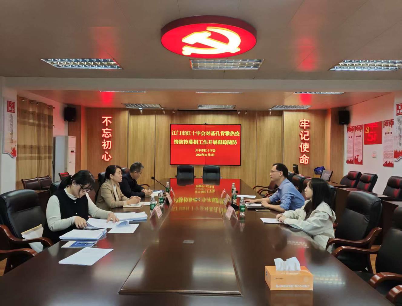 根据《江门市基孔肯雅热疫情防控款物接收使用管理指引》 《江门市红十字会疫情防控捐赠款物使用管理指引》《关于加强在江央企疫情防控捐赠资金使用管理的通知》的精神,11月5日上午,江门市红十字会到我会开展疫情防控募捐跟踪随访工作,为进一步提升我市疫情防控成效,确保捐赠资金及时规范使用,加强疫情防控资金管理提供坚实监督支持。
