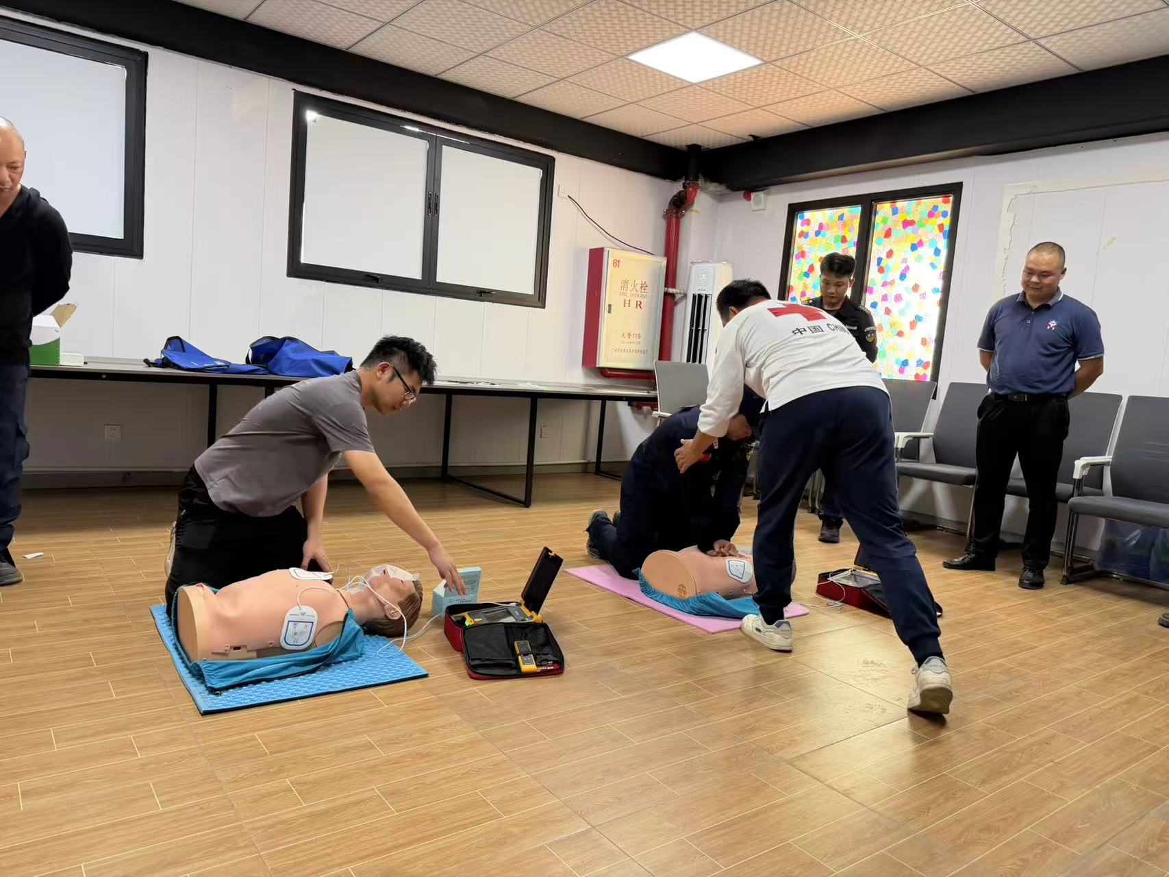 新春将至,年味渐浓,景区即将迎来客流高峰。为切实筑牢景区生命安全防线,提升一线工作人员应急处置能力,确保游客游览期间的生命健康安全,2月6日,我会联合开平市侨海华韵商业运营管理有限公司在开平赤坎不夜城景区进行了以“平安迎新春 救护伴你行”为主题的心肺复苏(CPR+AED)持证培训,景区工作人员、安保人员等一线从业者25人积极参与此次培训。