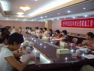| 8月13日下午,为了使开平市无偿献血工作更好地开展,开平市召开了2003年度无偿献血工作学习交流会。副市长黄婉慈、市府办主任科员关瑞斌、卫生局局长雷进强、副局长余珍珍以及各镇、办事处分管领导和市无偿献血领导小组成员共30多人参加了交流会,交流会由关瑞斌主持。 一直以来开平市无偿献血工作在市委,市政府的重视和领导下,在各部门密切配合和广大市民积极支持下,取得一定的成绩,保证了市的医疗临床急救用血。  |  | | 黄婉慈 | 关瑞斌 | 雷进强局长就开平市无偿献血的具体情况,回顾了今年上半年的无偿献血工作,提出了今后的工作设想: 一、今年上半年的无偿献血工作:各单位、镇(办事处)努力完成献血任务,各级领导积极带头,以身作则,带领广大干部职工,献出涓涓热血为确保市的医疗临床用血作出了积极的贡献;开展无偿献血宣传活动,通过广泛的宣传活动,使广大市民进一步认识到献血的深远意义及重要性;大力开展街头无偿献血,自去年起,开平市献血办联同江门市中心血站大力开展街头无偿献血活动,取得相当好的成绩。 二、今后的工作设想:进一步加强对无偿献血工作的领导,把无偿献血工作真正纳入政府的工作计划中去,作为一项长期的中心工作来抓,一级抓一级,层层落实;提高广大市民对无偿献血意义和重要性的认识,调动广大市民的积极性,使广大干部群众充分认识《献血法》的深远意义,使参加无偿献血真正变成广大干部群众的自愿自觉行动;凡未完成献血任务的单位,要主动与市献血办联系,在两个月内重新组织安排第二批献血人员,直至把未完成的任务追补完成为止;要使无偿献血工作落实到群众中去,保证无偿献血工作持续发展。  |  | | 雷进强 | 余珍珍 | 黄婉慈副市长在总结中,对开平市无偿献血工作成绩给予了肯定。同时对今年的无偿献血工作提出如下要求: 一、要切实加强领导,落实层级责任制:加强献血领导机构和献血工作队伍建设,做到专人专责,分工明确,责任落实;把落实献血责任制作为考核领导政绩和单位评先进的依据之一。 二、要深入持久地开展无偿献血宣传活动:使开平市的献血活动在宣传上做到电台有声音、电视有图像、报上有新闻,让群众通过提高认识而自觉参加无偿献血。 三、要采取有力措施,规范献血与用血管理:各镇、办事处、各部门、各单位要处理好无偿献血与当前实际血源管理的关系,要负起责任,加强献血管理,经常抓检查督促。  |  | | 会议现场 | 与会人员认真总结交流了无偿献血工作的经验,并就如何加大无偿献血工作的宣传力度、如何加大工作力度,切实把无偿献血工作的任务和要求落到实处,努力实现无偿献血工作的有指标向无指标、组织献血向自发献血的转变,进行了认真的讨论,提出了许多具有建设性的意见和建议。为全面推进的市的无偿献血工作再上新台阶作出共同努力。 |