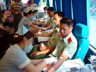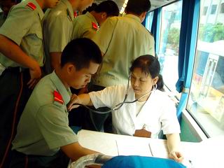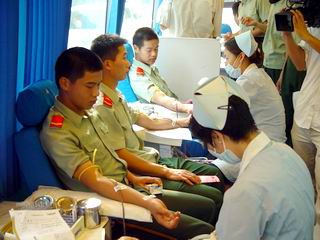 市三埠边防检查站张庆林站长表示在党的节日来临之际,组织官兵们参加无偿献血活动,主要是为了表示对党的爱戴和对人民的心意。张站长还以身作则带头参加献血活动。 今天共21名官兵参加了无偿献血,其中1人献400毫升,19人献200毫升。活动其间,笔者从前来献血的官兵中了解到,他们中不少已经不止第二次献血了。