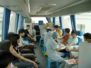 人头涌涌的采血车上