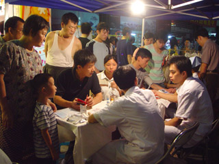 当天晚上,在采血车上,记者见到人头涌涌,市民在医务人员的安排下进行填表、体检、检测、献血等程序,场面显得秩序井然。有的是一双一对地来,有的则是好友结伴而来,有的献完以后,积极发动家人朋友来。截止昨天为止,我市共计1760人次参加无偿献血,献血总量达349300毫升,充分体现了开平市人民高尚的社会公德。