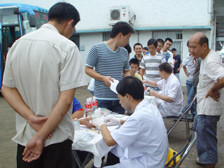 当天上午,在奔达纺织公司的达丰纺织印染服务有限公司门口,献血活动正有条不紊地开展着,员工们排队填表、体检、献血,秩序井然。前后仅1个多小时,共有37人(其中3个400毫升)共献出8000毫升热血,充分显示奔达员工捐血救人、爱心无限的高尚情操。
