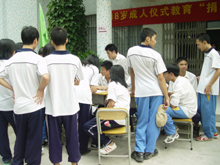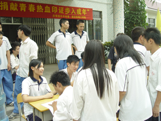 10月23日下午,江门市采血中心捐血车驶进我市吴汉良理工学校,由团市委、吴汉良理工学校和市献血办联合在此举办18岁成人仪式教育“捐献青春热血印证步入成年”活动,在短短两个多小时内,共有32名学生献出6400毫升热血,印证自己步入成年。