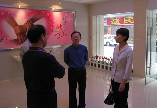 11月29日上午,开平市副市长梁民跃、市政协副主席、卫生局局长吉喆、市政府办公室副主任胡明俊一行在我市无偿献血办公室工作人员的陪同下,对我市献血屋的建设进行调研。