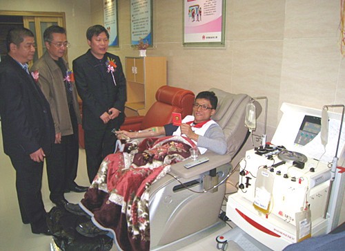 吴俊逸先生成为开平献血屋启用后第一个血小板捐献者