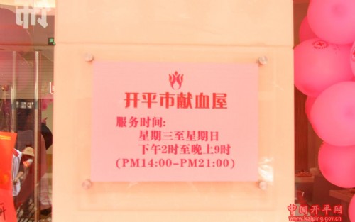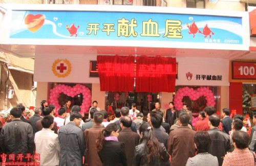 12月15日上午,开平市首家献血屋揭牌启用。江门市人大常委余松建、江门市人民政府副秘书长梁启华、江门市卫生局副局长程学斌,开平市领导杜海英、吉喆,以及江门三区四市献血办及红十字会负责人、开平市红十字会志愿者等100多人出席了启用仪式。
