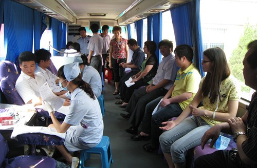 4月25日上午,献血车再次开进了位于开平市百合镇的龙臻制衣有限公司,这已经是龙臻制衣有限公司第2次自发组织员工开展无偿献血活动了。本次龙臻制衣有限公司30多名员工参与活动,其中19人成功献血,献血量共4000毫升。