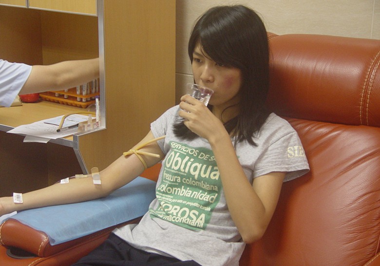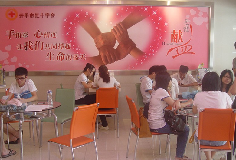 12日下午,开平献血屋采血大厅爱心涌动,现场气氛高涨。络绎不绝的学生们排起了长长的队伍,参加无偿献血。在献血屋工作人员的指导下,学生们依次进行填表登记、测血压、常规体检、采血等各项程序,整个献血现场有条不紊。