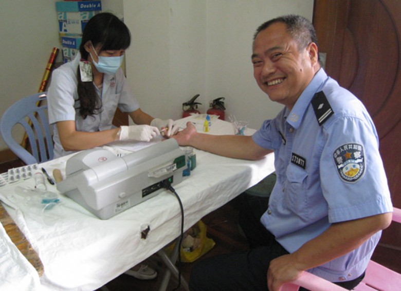 献血现场,每位民警都严格遵守献血秩序,积极配合医护人员,填写资料、身体检查、献血,有部分民警更是连续多年自愿参加无偿献血。