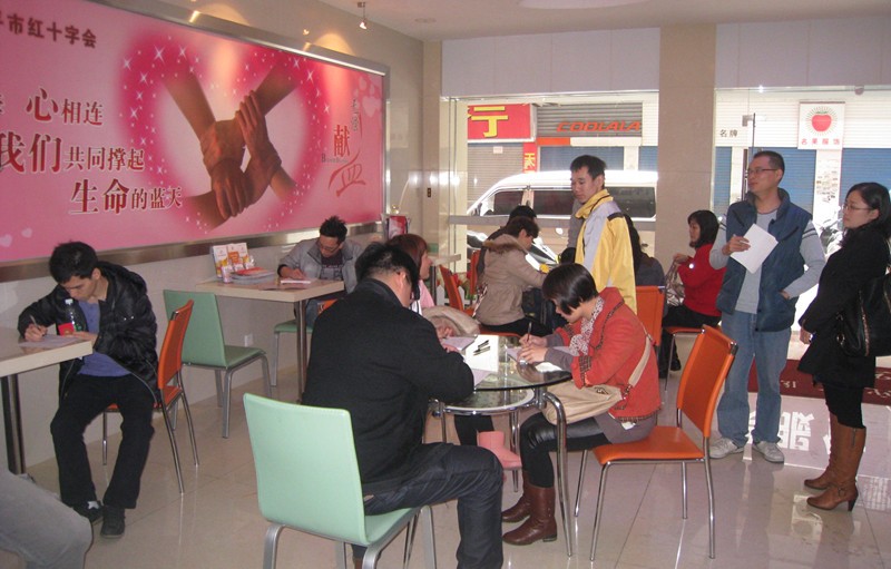 1月29日,市中心医院、市第二人民医院、市中医院等单位开展献血活动,得到广大医务人员的积极响应。不少医务工作者一大早就提前赶到开平献血屋,排队等候献血。作为医务人员,他们更懂得病人没血用的痛苦,更明白无偿献血的必要性。有的同志接到献血通知后,刚下夜班甚至还来不及吃早餐,就直接从医院来到献血屋,他们的奉献精神感动了在场的工作人员。