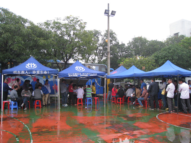 赤坎镇的献血情况是振奋人心的,单次采集血液108..5人份,完成全年任务的120.56%,是我市2014年首个超额完成献血任务的镇,献血量是2013年的1.53倍。赤坎镇献血负责人接到献血通知后,除发动镇政府、各村委会的干部,还积极与辖区内的单位、企业联系,并得到大力的支持,献血报名人数多达170余人。来自雅琪集团、朝阳卫浴等多家企业的员工献血热情高涨,在雨中排起了长龙,场面火爆而井然有序。