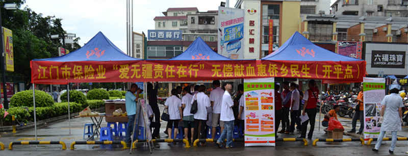7月1日上午,江门市保险业“爱无疆责任在行”无偿献血惠侨乡(开平点)活动在我市益华广场举行,来自平安人寿保险公司、中国人寿保险公司、新华保险公司、友邦保险公司的31名爱心人士成功捐献血液共计7200毫升。