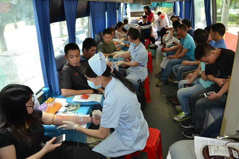 4月19日, 赤坎镇人民政府篮球场内停靠了一辆收集爱心的车辆——无偿献血车,旁边一群人排着长队进行填表、体检、化验、献血……一切都井然有序——这是赤坎镇人民政府精心组织的一场无偿献血活动。